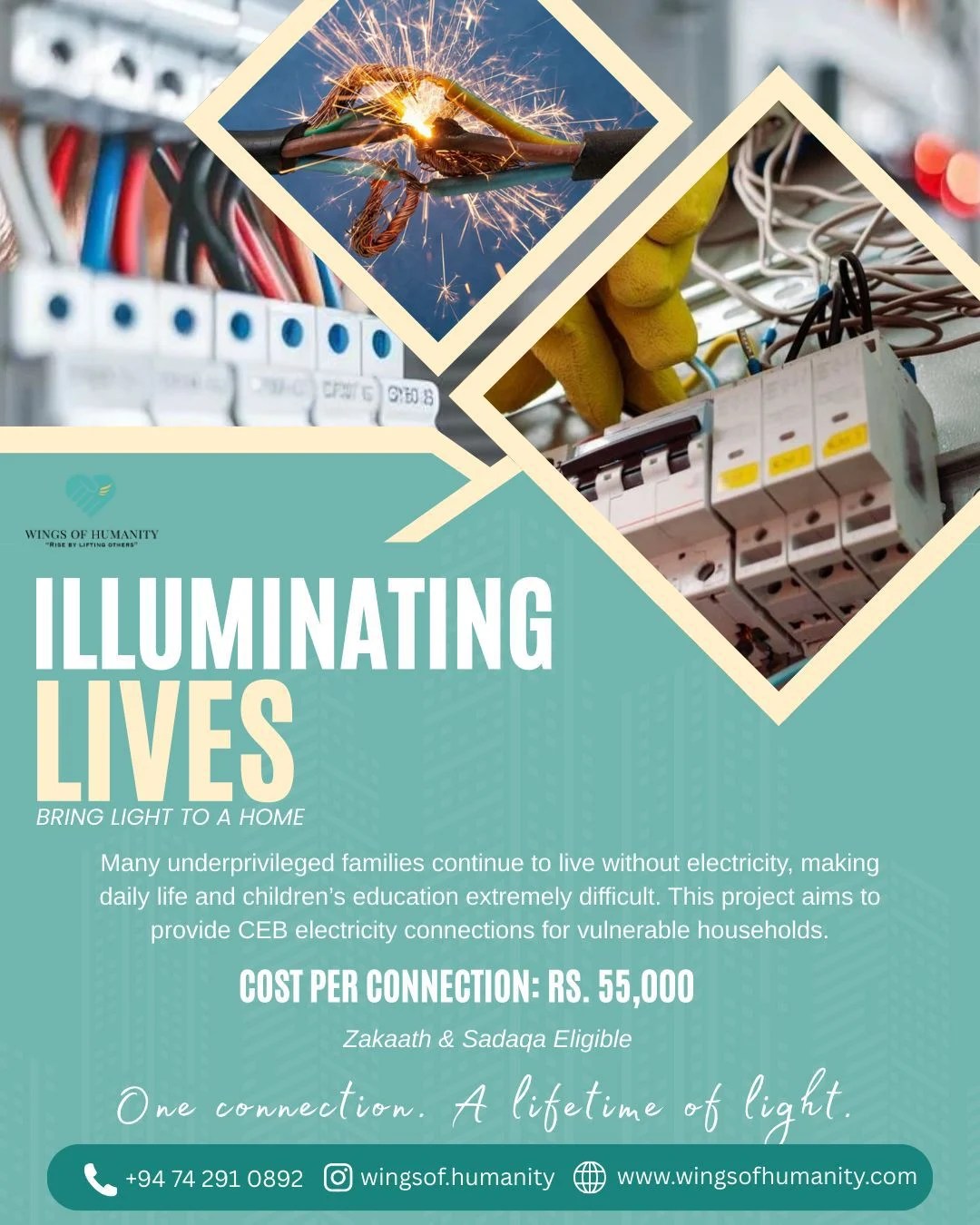 Provide CEB Connection for Electricity connections for underprivileged families.